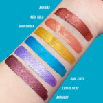 Maquillaje cake liner activado con agua con un acabado cromado metalizado. Perfecto para brindar un color intenso para el maquillaje artístico de la cara y el cuerpo.